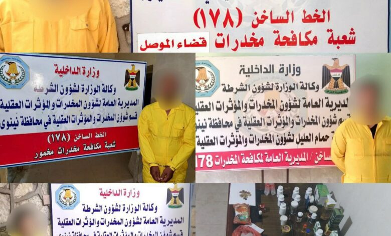 مكافحة المخدرات في نينوى تلقي القبض على أربعة متّهمين بترويج وتعاطي المواد المخدرة