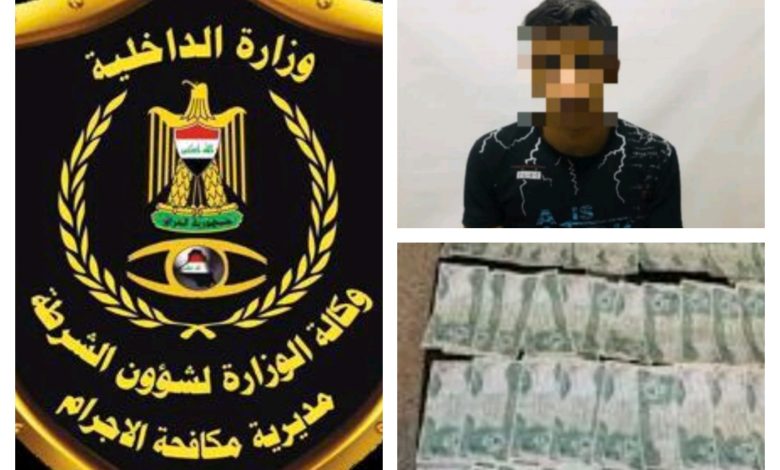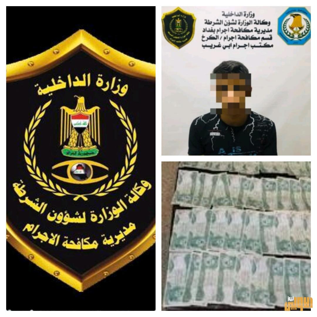 القبض على متهم قام بسرقة مبلغ (اربع مئة الف دينار عراقي) بعد اعترافه بالدخول عن طريق مفرغة الهواء لدار في جانب الكرخ من العاصمة بغداد .