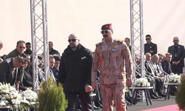 وقدم الفريق الزهيري التعازي للقيادات السياسية والأمنية الحاضرة في التشييع باسم القائد العام للقوات المسلحة محمد شياع السوداني.