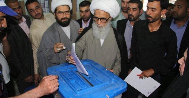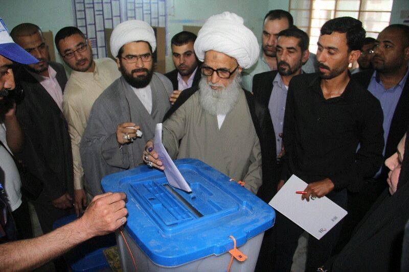 الاولى نيوز / بغداد ادلى السيد احمد الصافي ممثل المرجع الاعلى السيد علي السيستاني بصوته في احد مراكز الاقتراع بالنجف .