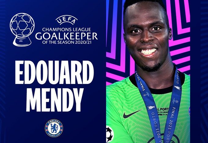 حصل حارس مرمى فريق تشيلسي إدواردو ميندي، على جائزة أفضل حارس مرمى في أوروبا عن الموسم الماضي 2020/2021.