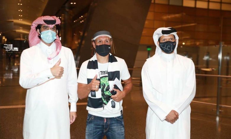 وغرّد السد حامل لقب الدوري القطري على الصور التي ظهر بها كازورلا وهو يرتدي وشاحاً حمل شعار النادي: “صور وصول سانتي كازورلا إلى الدوحة”.