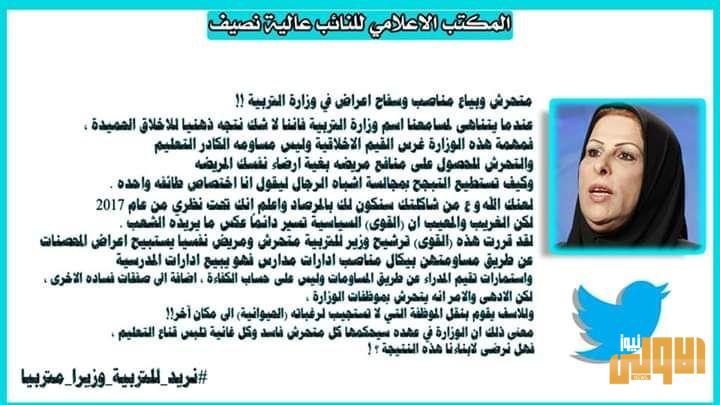 الرئيسية/المحلية/نصيف: متحرش وبياع مناصب وسفاح اعراض في وزارة التربية المحلية نصيف: متحرش وبياع مناصب وسفاح اعراض في وزارة التربية Manager Awla2020-05-02 أقل من دقيقة فيسبوك X واتساب تيلقرام مشاركة عبر البريد Manager Awla2020-05-02 أقل من دقيقة فيسبوك X واتساب تيلقرام مشاركة عبر البريد