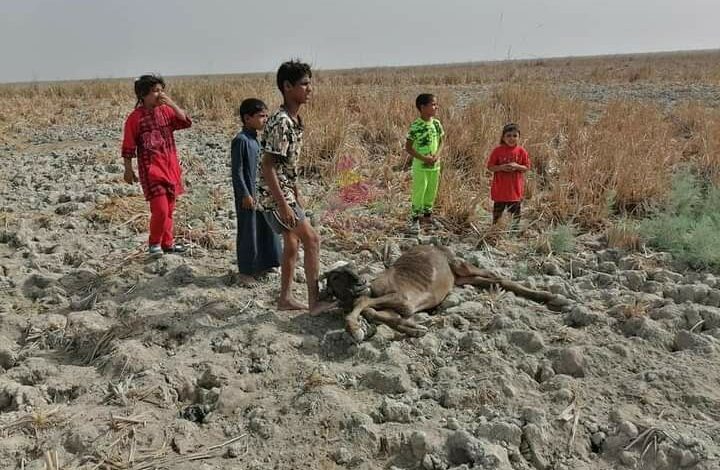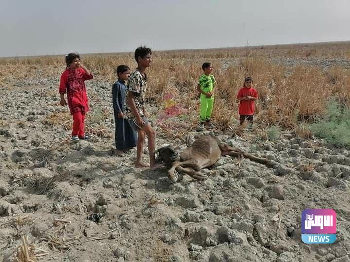 نفوق عدد من الحيوانات في الاهوار بسبب تصاعد نسب الجفاف (صور)