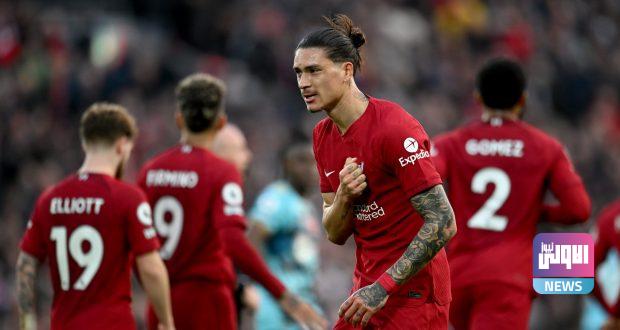 وتمكن داروين نونيز من تسجيل الهدف الثاني والثالث ليفربول في الدقائق 21 و41.