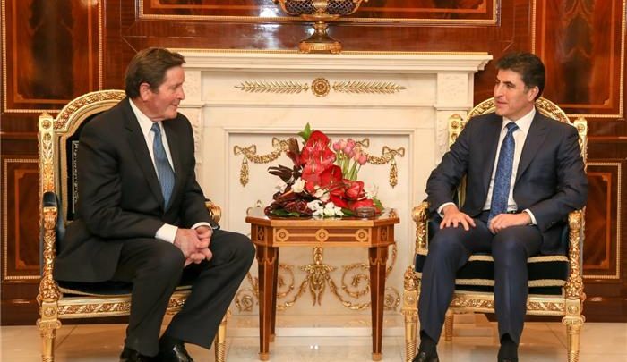 من جانبه، عبر رئيس وزراء إقليم كوردستان عن الشكر للمساعدات الأمريكية المستمرة لإقليم كوردستان والعراق في الفترات الصعبة، في المجالات العسكرية والإنسانية، وسلط الضوء على تحسن علاقات أربيل – بغداد، وأكد على دعم إقليم كوردستان لعادل عبدالمهدي، رئيس وزراء العراق، ولحل المشاكل عن طريق الحوار.