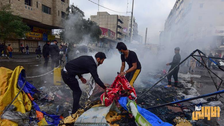 نيران تلتهم خيماً ضمن ساحة التحرير وسط بغداد