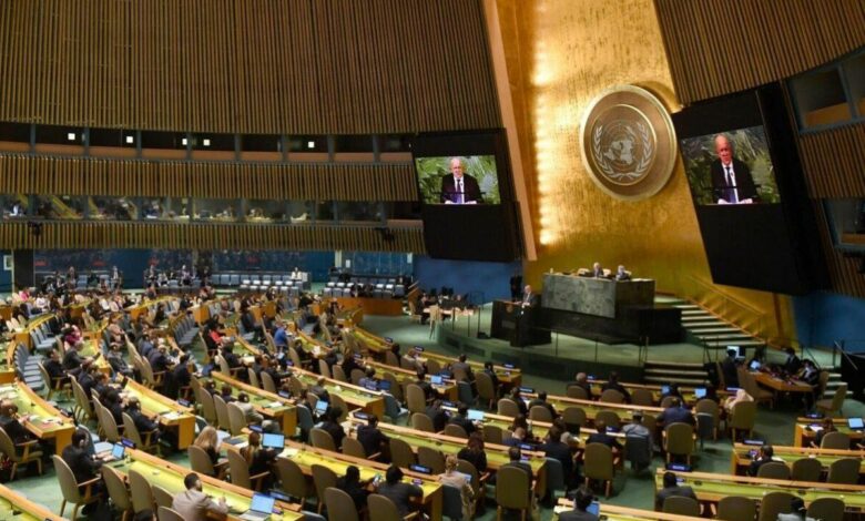 وبدأت الجمعية العامة للأمم المتّحدة عصر مناقشة مشروع قرار قدّمته أوكرانيا وشارك في صياغته الاتّحاد الأوروبي يندّد بضمّ روسيا أربع مناطق أوكرانية، في خطوة يسعى من خلالها الغرب لإثبات عزلة موسكو على الساحة الدولية.