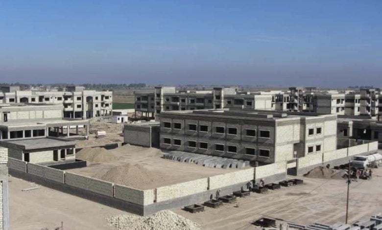 وأضاف، أن “المجمع السكني شُيد على مساحة 60 دونماً ويحتوي على 453 وحدة سكنية، موزعة على عمارات سكنية ذات ثلاثة طوابق بنموذجين من العمارات”، مشيرا الى أن “النموذج الاول يضم 23 عمارة بواقع 207 شقق، والنموذج الثاني يضم 41 عمارة بواقع 246 شقة، وقد بلغت نسبة انجاز المشروع نحو 60%”.