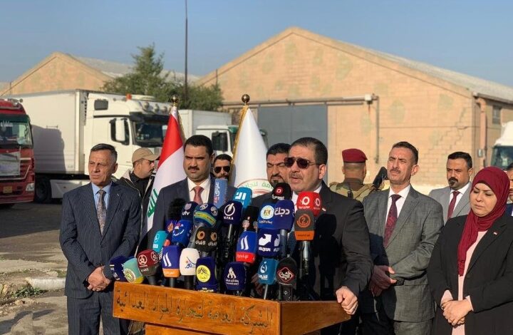 أعلن وزير التجارة أثير الغريري، اليوم السبت، انطلاق قوافل محملة بمواد غذائية إلى المنافذ التسويقية.