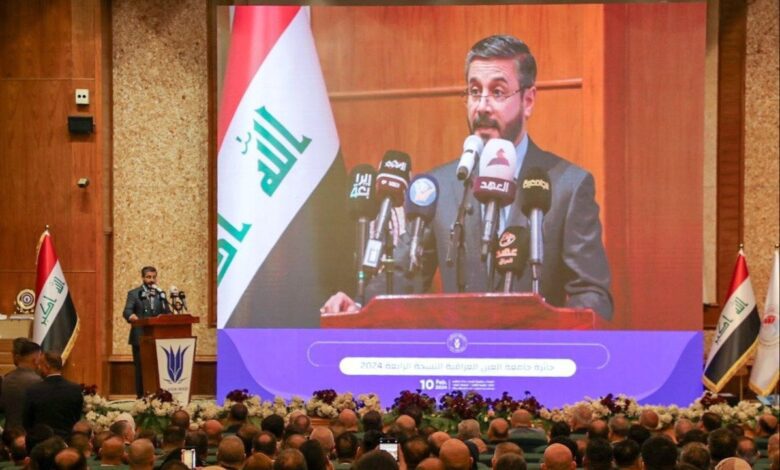 وذكر بيان للوزارة، تلقته (الاولى نيوز)، أن “وزير التعليم العالي والبحث العلمي نعيم العبودي، كرم أكثر من مئة شخصية من الفائزين بجائزة جامعة العين العراقية بنسختها الرابعة للعام 2024، التي شملت الباحثين الرواد وأوائل الجامعات وأصحاب البحوث عالية التأثير والكتب المؤلفة والأكاديميات المتميزات، بحضور جمع من النواب والوكلاء ورؤساء الجامعات والمديرين العامين والتدريسيين والباحثين”.