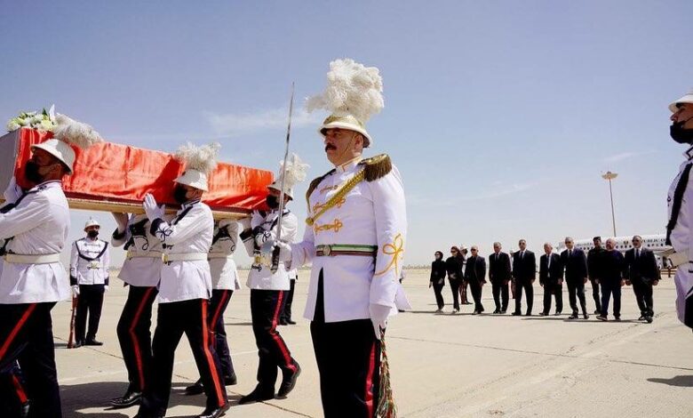 وتقدم رئيس الوزراء مصطفى الكاظمي، اليوم السبت، مستقبلي جثمان الشاعر الكبير مظفر النواب، حيث بدأت مراسيم الاستقبال الرسمي.