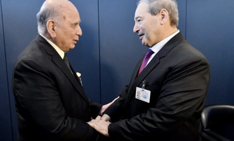 من جانبه، اشاد وزير الخارجيَّة السوري فيصل المقداد “بمواقف العراق الداعمة لحلِّ الأزمة السوريَّة سلميّاً”، مُبدياً رغبة حكومته “في تعزيز التعاون الثنائيِّ بين البلدين؛ وُصُولاً إلى تحقيق الاستقرار”.
