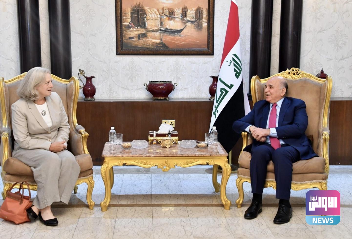بحث وزير الخارجية فؤاد حسين مع السفيرة الأمريكية لدى العراق آلينا رومانوسكي، اليوم الاثنين، مجمل العلاقات الثنائية بين البلدين.