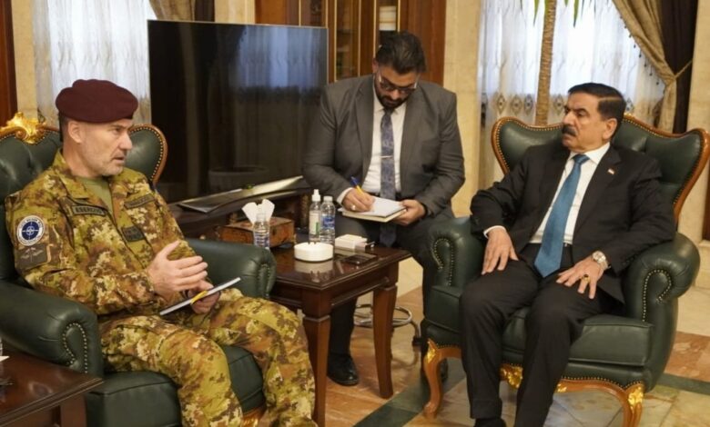 بحث وزير الدفاع جمعة عناد، اليوم الثلاثاء، مع قائد بعثة حلف شمال الأطلسي (الناتو) في العراق الفريق جيوفاني م. ايانوتشي، أُطر التعاون من أجل تطوير قدرات الجيش العراقي.