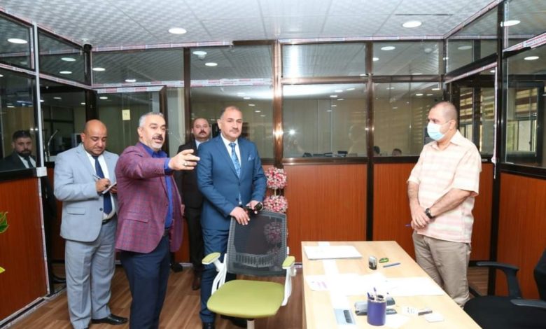 تفقـد وزير الصناعة والمعادن السيد : منهـل عزيـز الخبـاز : هذا اليوم الخميس الموافق ١ تشرين الأول سير الإجراءات ومستوى الأعمال المقدمة في قسم العلامات التجارية التابع إلى الدائرة الاقتصادية في مركز الوزارة .