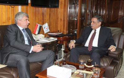 بحث وزير الكهرباء المهندس قاسم محمد الفهداوي, مع السفير الاسباني خوان خوسيه سكوبار وممثل شركة كابتل جنيف الاسبانية سبل التعاون المشترك بين البلدين.
