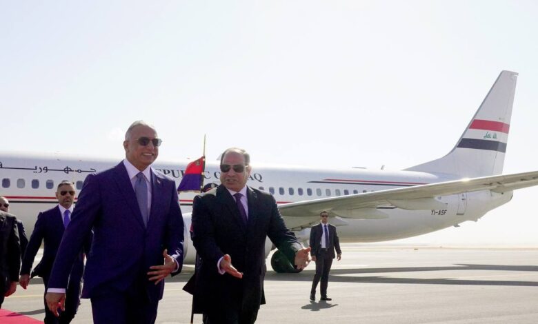 وصول الكاظمي الى مصر والسيسي باستقباله (صور)