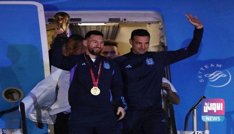 وكان ليونيل ميسي، قائد منتخب الأرجنتين في مقدمة من خرجوا من الطائرة وهو يحمل لقب كأس العالم، قبل أن يلحق به المدرب ليونيل سكالوني.