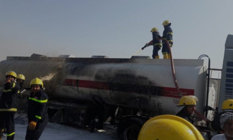وفاة مدني واصابة اخر باحتراق صهريج لنقل المشتقات النفطية بالقرب من منفذ طربييل