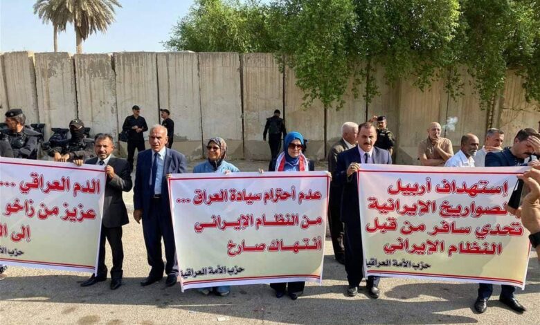 حيث عبر المحتجون عن أن “استهداف اربيل بالصواريخ هو جريمة انتهاك صارخ وتحدي سافر من قبل النظام الايراني”.