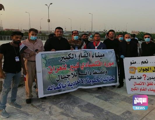 واضاف، ان”المشاركين بالوقفة طالبوا باكمال ميناء الفاو، بدلا عن الربط السككي”.