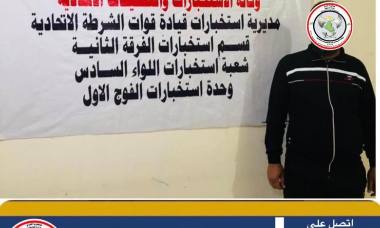 تمكنت مفارز وكالة الاستخبارات المتمثلة بمديريةاستخبارات الشرطة الاتحادية في وزارة الداخلية من القاء القبض على احد قادة داعش الارهابي المطلوب وفق احكام المادة ٤ ارهاب لانتمائه لعصابات داعش الارهابية والذي عمل بمايسمى قاطع ديالى بمنصب مسؤول مفرزة تفخيخ.