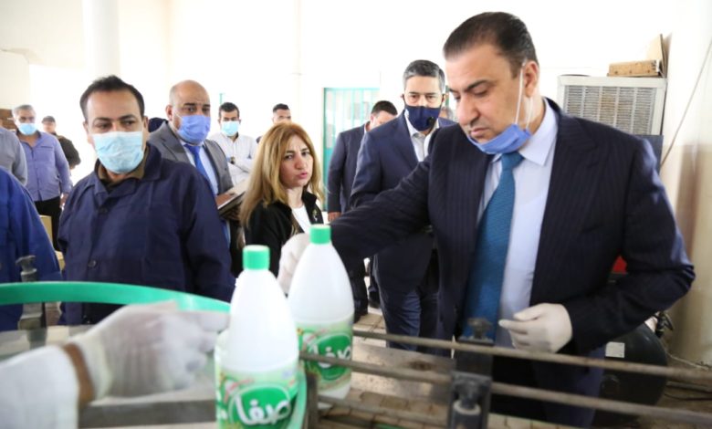 وكيل الصناعة والمعادن يتابع ميدانيا عملية انتاج المعقمات والمنظفات في الشركة العامة
