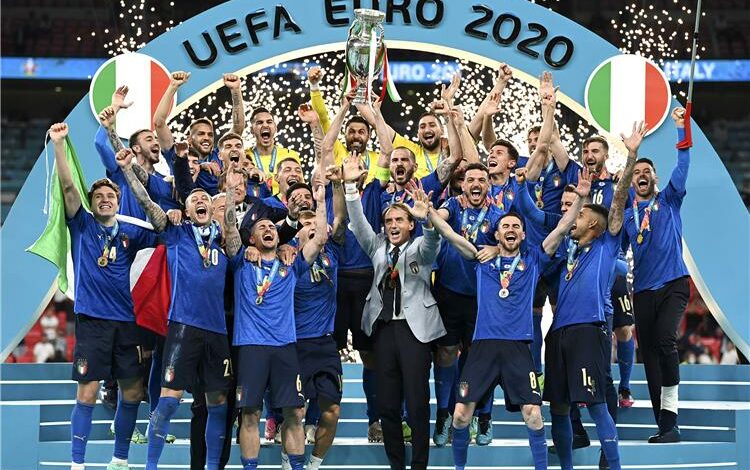 وفاز ببطولة يورو 2020 الأخيرة، المنتخب الإيطالي على حساب إنجلترا في النهائي بركلات الترجيح، الذي أقيم على ملعب ويمبلي في العاصمة الإنجليزية لندن.