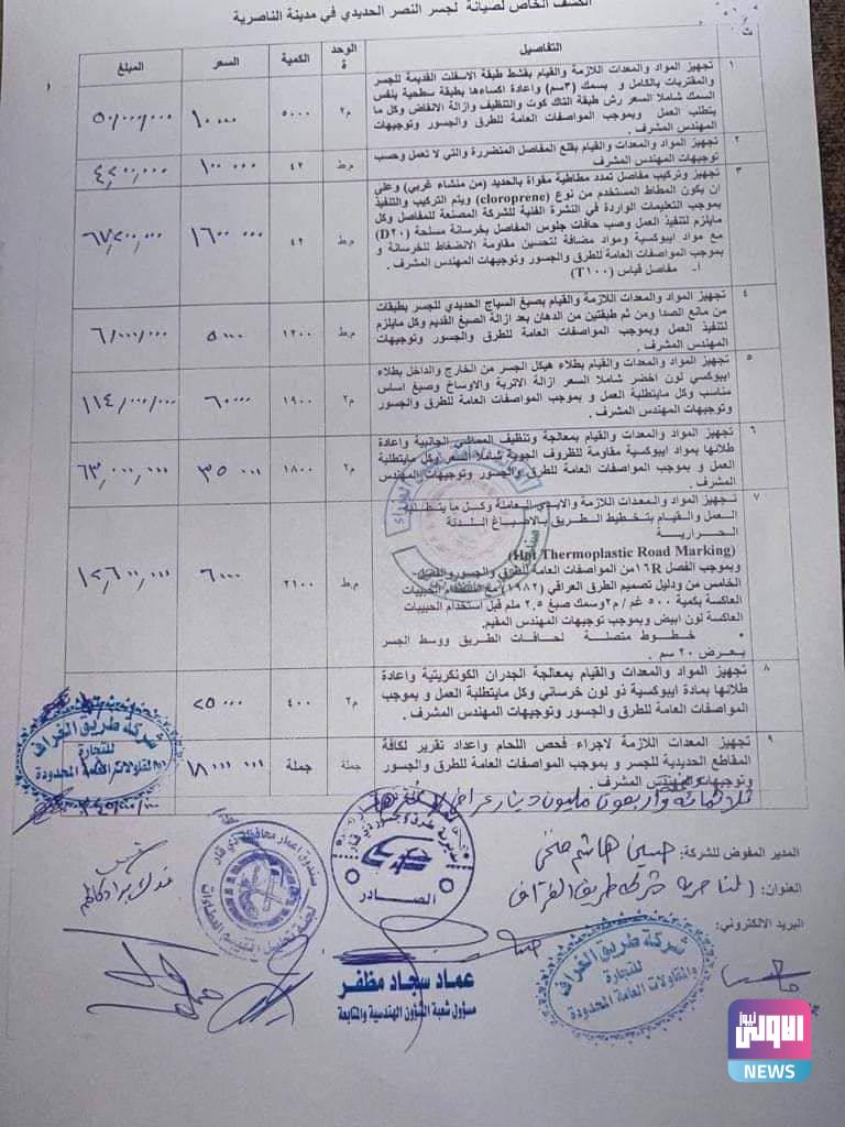 وثيقة فساد جسر النصر في الناصرية