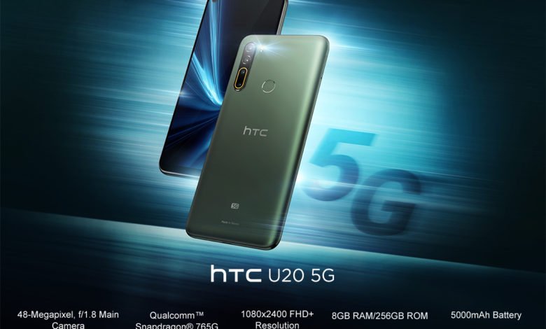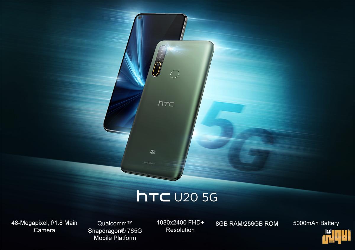 وبالنسبة للهاتف HTC U20 5G، فهو يُعتبر كما قلنا سابقًا أول هاتف من شركة HTC يدعم شبكات 5G، وهو يضم مواصفات تقنية تشمل شاشة LCD بحجم 6.8 إنش وبدقة +FullHD، ومعالج ثماني النوى من فئة Snapdragon 765G، وذاكرة عشوائية بحجم 8GB، وذاكرة داخلية بحجم 256GB قابلة للتوسع عن طريق الذاكرة الخارجية MicroSD، فضلا عن بطارية بسعة 5000mAh تدعم الشحن السريع بقوة 18W.